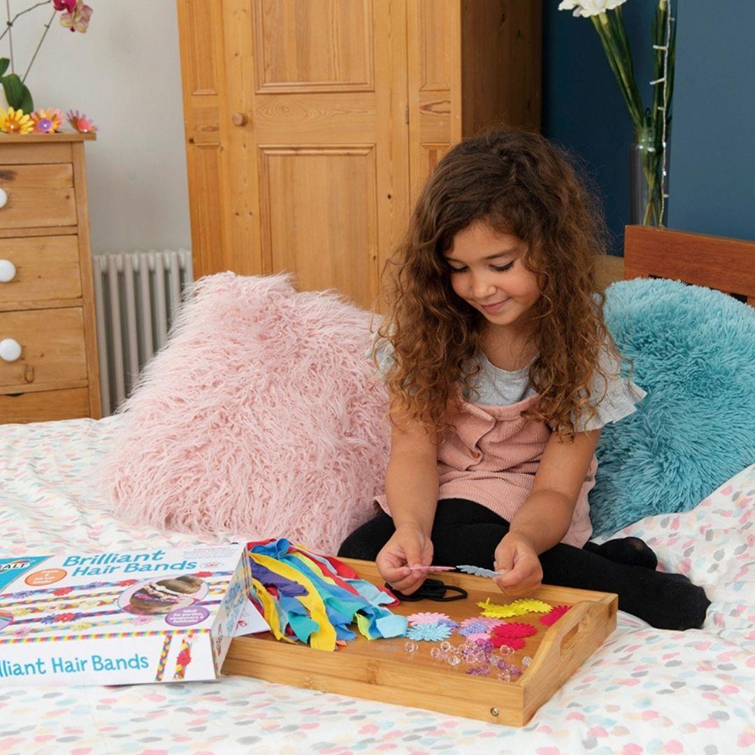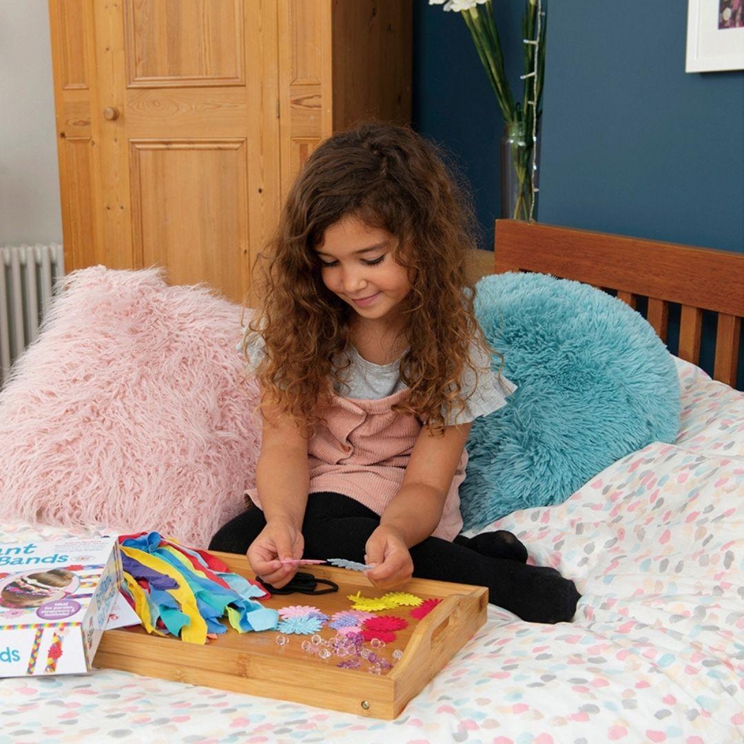 Make 8 cool hair braids by plaiting together colourful fabric strips with flowers and beads. Simply thread on the flowers and beads as you plait then finish by tying the braids to the elastic hair bands – no stitching required. Ideal for parties, sleepovers and festivals.