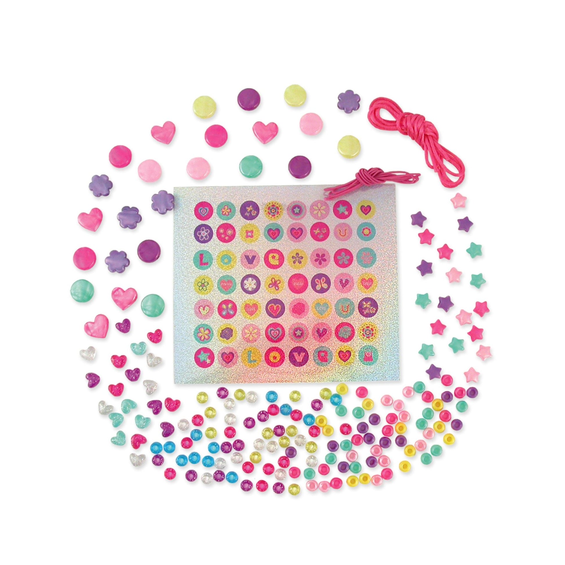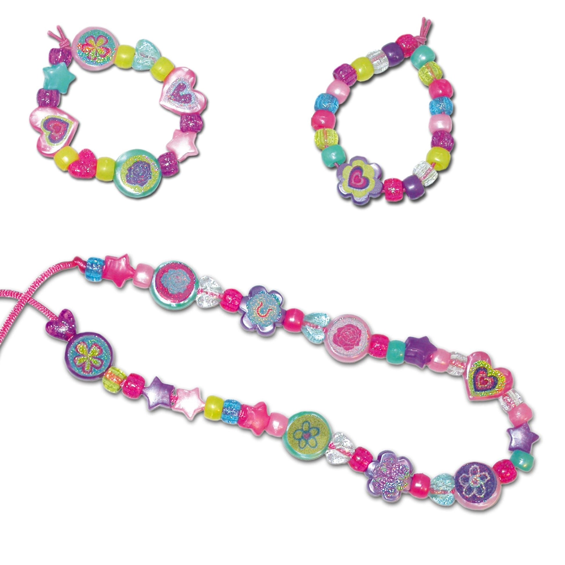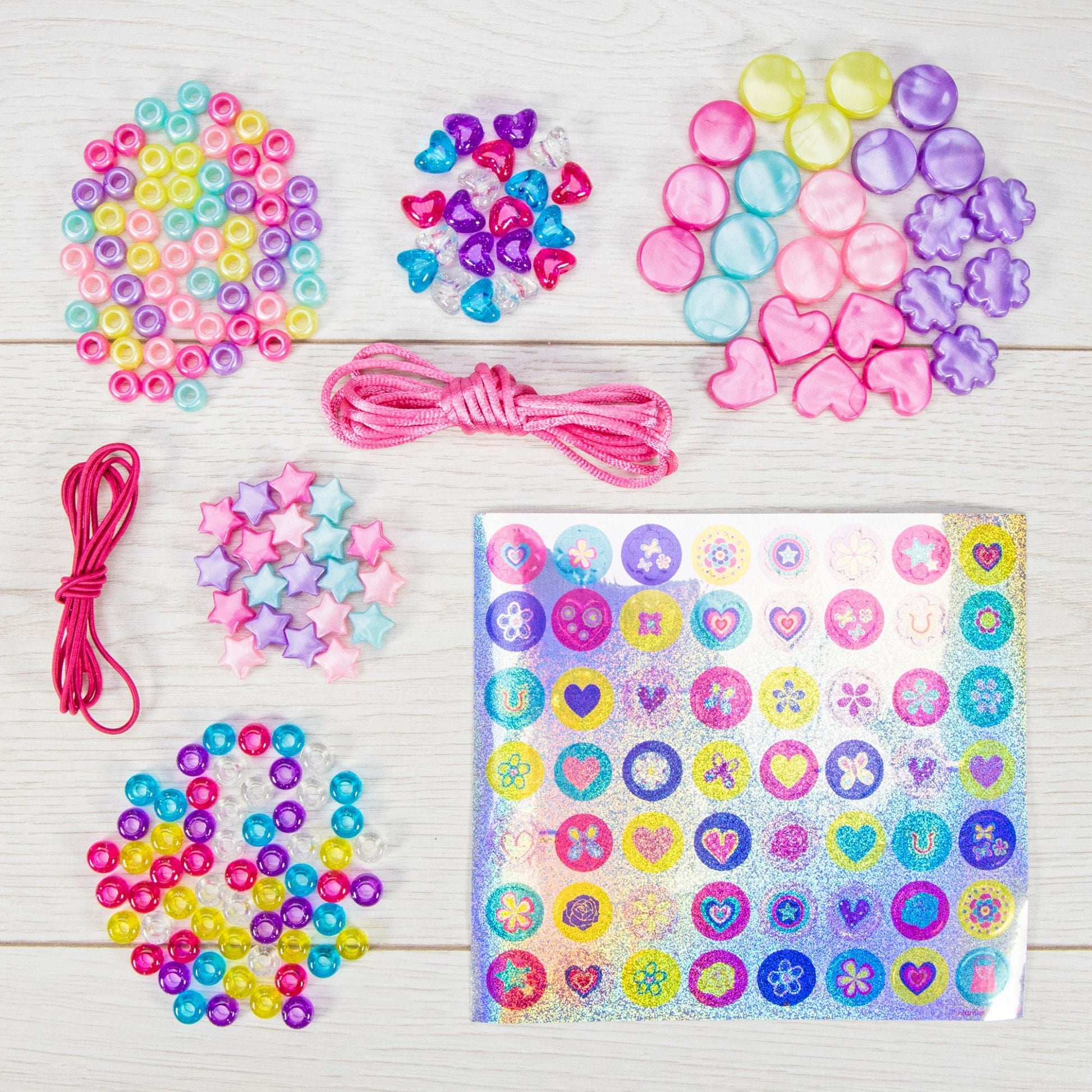 • Contents: 15 round picture beads, 5 heart picture beads, 5 flower picture beads, holographic stickers, 20 heart beads, 20 star beads, 120 round beads, silky cord, elastic, guide.
