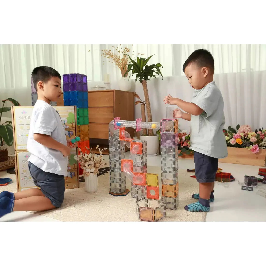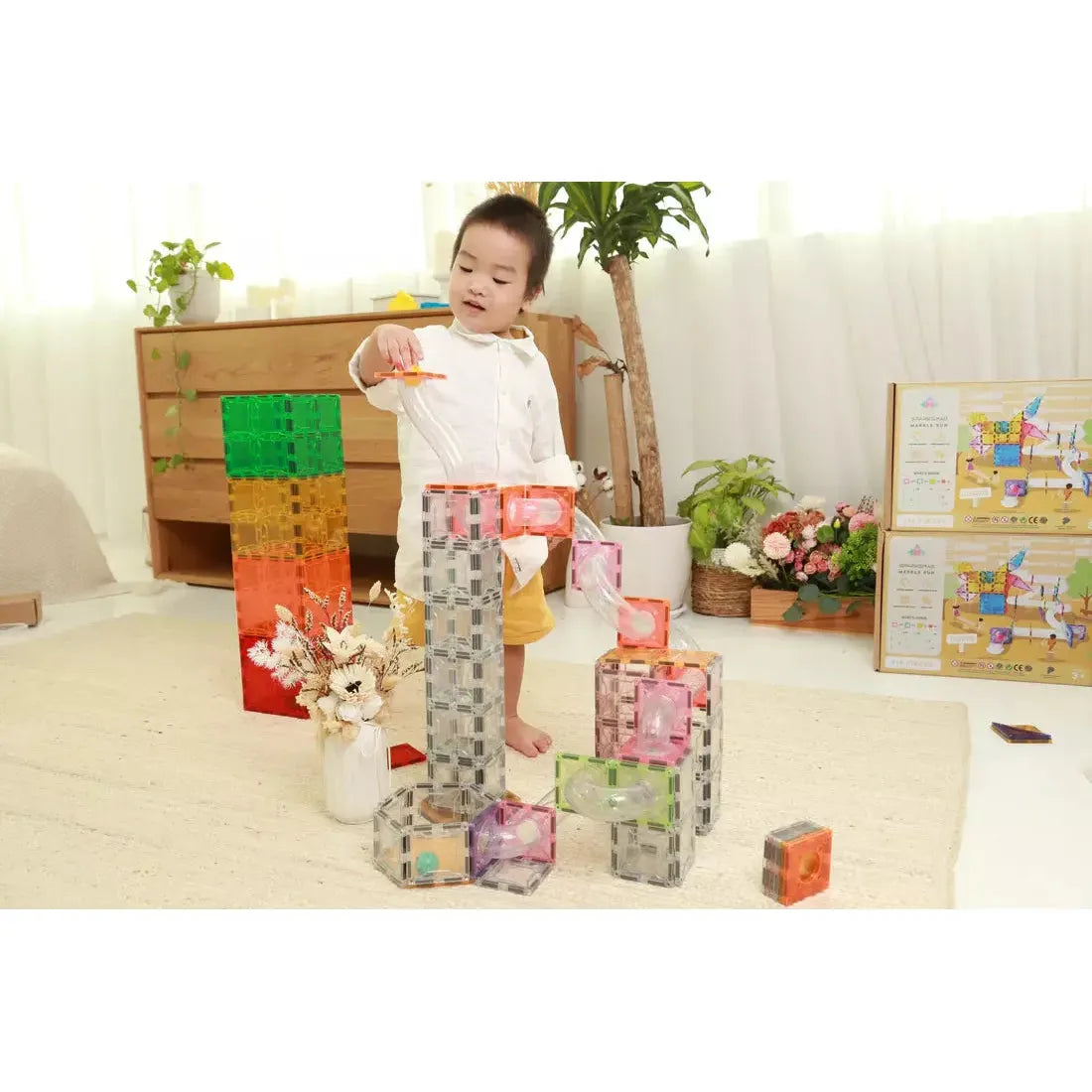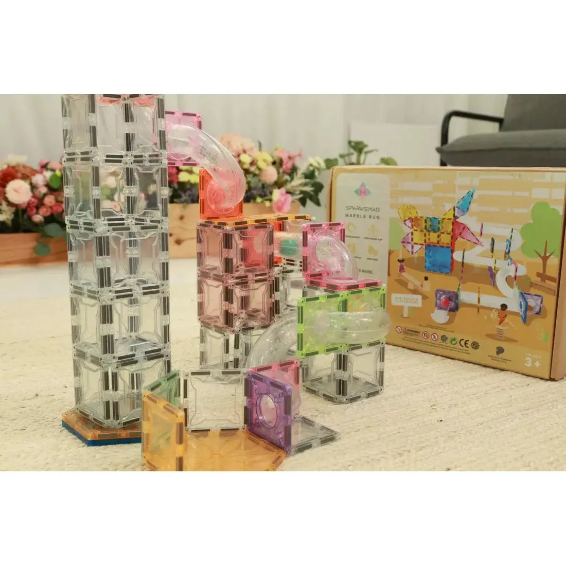 🟡 VERSATILITY - SparksMag is scalable as can be built as big as desired by adding more pieces by adding more pieces. SparksMag tiles and Marble run are compatible with each other and can be played interchangeably!